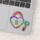 Herzschloss und Schlüssel in Regenbogenfarben.