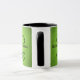 Herz und Wirbel sind schwarz auf einem limiengrünen Hintergrund. Hier auf einer Tasse. Personalisieren Sie mit Ihrem Namen.