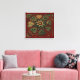 Richtig gefärbter Paneeldruck mit einem verzierten Herz- und Sternenmuster in Oliven- und Cremetönen, Set vor bordeauxfarbenem Hintergrund. Einer von vier Drucken aus der Serie 'Rustics' der Kollektion 'Herz voller Liebe' mit gedehnten Leinwand. Großartig alleine, oder in Verbindung mit den drei anderen "rustikalen" Paneelen für eine außergewöhnliche Ergänzung zu jedem Zimmer!