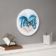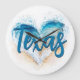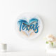 Wasserfarbene Herzwelle am Strand mit blauen und marinebolden modernen Drehbuch für "Texas". Sie können die Größe, den Stil, die Farbe und die Schattenfarbe des Schriftartes anpassen, um Ihre eigene Wanduhr im Souvenirstil zu kreieren. Verringern Sie die Größe des Schriftartes für andere längere Wörter. Ein Geschenk für Ihren Lieblings-Texan.