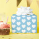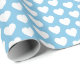 Ein Packpapier mit weißen Herzen auf einem hellblauen Hintergrund. Sie können die Hintergrundfarbe Ihrer Wahl wählen.