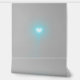 Ein blaues Herz in einem blauen, neonfarbenen Look. In einem Sternschnupfen mit blauen Spuren, die aus dem Herzen schießen. Auf grauem Hintergrund. Sehr beruhigende, beruhigende Farbkombination. Einfach und niedlich.
