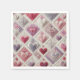 Intrikate Herzdesigns in verschiedenen Rosa-, Rot- und lila-Tönen sind in einem diagonalen Steppmuster angeordnet