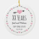 Ein Muster der illustrierten schwarzen Pfeile und rosa Herzen kreisen diese personalisierte celebratory Verzierung ein. Handgeschriebener Arttext listet einige Jahre, die Namen von zwei Leuten, den Wörter glücklichen Jahrestag und ein Hochzeitsdatum auf. Sie können verschiedene Hintergrundfarben versuchen, indem Sie den besonders anfertigen Knopf anklicken. Er macht ein romantisches Geschenk für ein spezielles Paar!
