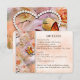 Detailkarte mit dem Empfang und Unterkunft für den Gast. Schönes Design mit einem orangefarbenen Schmetterling, der die weißen, herzförmigen Perlenperlen berührt. Ein weiterer Schmetterling fügt sich in den Bouquet heller Rosen in Orange und Rosa ein. Orange ist die Designfarbe auf dem Pergamentpapier-Bild. Konvertieren Sie dies für jeden Anlass. Fügen Sie ein Foto hinzu und/oder ändern Sie den Text.