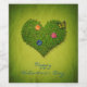 Liebliche romantische Illustration: Herzlicher Rasen mit Blume und einem Schmetterling auf grünem, grungenhaftem Hintergrund.