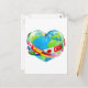 Ein Beispiel für eine herzförmige Welt mit den Flaggen vieler Länder, die um sie herum fliegen.