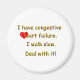 Ich habe eine dekompensierte Herzinsuffizienz - nicht dazu gedacht, die medizinischen Warnarmbänder zu ersetzen. Nur eine andere Möglichkeit, die Botschaft mit einem Töne Spaß zu vermitteln. Goldene Schrift mit Kies und Schlagschatten. Herzbild.