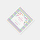 Leider ist beim Bestellvorgang nicht die Größe angegeben, zumindest habe ich es nicht gesehen. Der Name "Duschen"-Servietten ist etwas seltsam :-) Aber man kann aus verschiedenen Designs auswählen und es sieht ganz nett aus. Ich würde mir aber noch viel mehr verschiedene Farben und Muster wünschen! Insgesamt eine nette Idee für ein personalisiertes Accessoire zu allen möglichen Feiern. Der Druck ist OK, er ist nur ganz leicht unscharf.