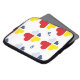 Ein Kreuz bildet sich im negativen Raum von vier Herzen. Die Liebe und das Opfer Jesu repräsentieren.