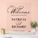 Herzlich willkommen an der Hochzeitsfeier mit diesem personalisierten Schild. Wenn Sie Fragen zum Kunstwerk haben oder eine Anpassung benötigen, kontaktieren Sie mich bitte per Chat, bevor Sie einen Einkauf tätigen. Für Unterstützung bei Bestellungen, Versand, Produktinformationen, etc., wenden Sie sich bitte direkt an den Zazzle Kundenservice, um Touch zu erhalten.