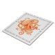 Willkommen in Amanda’s Kitchen - geschrieben in spielerisch schwarzem Text. Niedlicher orangefarbener Orangentopus mit hellblauem Mandarine und Gänsebläschen für Sauger. Original digitale Malerei. Die Kachel mit einem Namen und einer kurzen Nachricht personalisiert. Niedliche, lustige Kachel für alle, die das Meer oder niedliche Tiere Lieben. Teil der Daisy-Octopus-Kollektion.