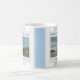 Herzlich willkommen in Ihrem Seehaus, Familienname, Foto Tasse. Fotos auf blauen Streifen. Fügen Sie Ihre eigenen Fotos, Text und Namen, um die Tasse zu personalisieren.