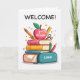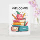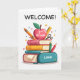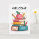 Ein fröhlicher Gruß von hinten an die Schule für einen neuen 1. Dieses farbenfrohe Design für Jungen und Mädchen umfasst einen Bücherstapel, einen hellroten Apfel, Bleistifte, Stifte und einen aquamarinen Bleistiftkoffer, der mit dem Namen eines Schülers personalisiert werden kann. Eine gute Möglichkeit für Lehrer, Schüler in ihrem Klassenzimmer willkommen zu heißen, oder für Eltern, den Beginn eines brandneuen Jahres zu feiern. Das macht Spaß am ersten Schultag.