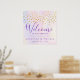 Herzlich willkommen auf unserem Hochzeitsposter. Konzipiert mit Fake Gold Konfetti sprinkled entlang der Spitze. Ein blasser lila und gelber Aquarellhintergrund.