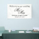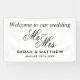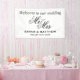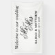 Herzlich willkommen auf unserem hochzeitseleganten Mr. und Mrs. Script Text Banner. Klassische schwarz-weiße Designvorlage. Chic Dekoration und Schilder für die Leitung der Gäste. Erhältlich für innen und außen. Erhältlich in kleinen und größeren Größen.