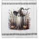 Herzlich willkommen - Herbstzauberei am Zaunduschvorhang Ein whimsikaler Geist in einem spitzen Hexenhut, der neben einem weißen Zaun steht, umgeben von Kürbissen, goldenen Blätter und Bergen von Herbstblättern. Schwarze Vögel steigen über und lassen die Szene in Bewegung, während die warmen Herbsttöne die Komposition in saisonalem Komfort untermauern. Es ist eine charmante Mischung aus Halloween-Unheil und Ernte Schönheit - wo das Übernatürliche das weiche Glühen der Oktober-Nachmittage trifft.