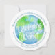 Whimsy Aquarellmalerei der Welt Baby willkommen Einladungen. Personalisiert mit Ihrem eigenen Baby Foto auf der Rückseite, und willkommen neue Baby Party Details. Niedlicher, blauer und grüner, lockerer Weltenhintergrund. Weitere Babyartikel der gleichen Art sind erhältlich. © Einzigartig in Aquarellfarbe gestrichen und von www.mylittleeden.com entworfen