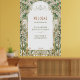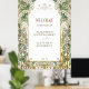 Das atemberaubende Jugendstil-Hochzeitszeichen mit elegantem Blumenbogen empfängt Sie mit einem herzlichen Empfang. Feine weiße Blüten und üppige Vegetation verbinden sich mit goldenen Akzenten und schaffen einen eleganten und zeitlosen Rahmen für Ihre Begrüßungsbotschaft. Dieses handbemalte Blumendesign ist perfekt für naturlich inspirierte, Vintage oder romantische Hochzeitsthemen geeignet und bringt eine Touch der Eleganz in Ihren ganz besonderen Tag. Der klassische Jugendstil und die harmonische Farbpalette von Grün, Gold und Weiß machen dieses Schild zu einem schönen Aushängeschild für Ihre Hochzeitsdekoration.