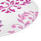 Leaf und Scrollherz geformter Damast mit Details in Pinks und Pflaumen auf weißem Hintergrund in einem gemusterten Ausdruck außerhalb des Set.