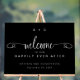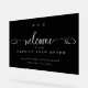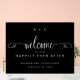 Set Sie den Ton für Ihren besonderen Tag mit diesem schlichten Schwarzweiß-Acrylklebzeichen. Dieses moderne minimalistische Design mit "Welcome to Our Happily Ever After" in einem stilvollen, handgeschriebenen Drehbuch mit anmutigen Schlägen ist mühelos elegant. Personalisieren Sie es mit Ihren Initialen, Namen und dem Hochzeitsdatum für eine zeitlose, raffinierte Touch. © Kimbellished, LLC