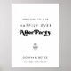 Herzlich willkommen in unserem glücklichen Ever After Party Wedding Sign. Ein Retro-Chic-Thema: adoptier dieses etwas Vintage und stilvolle typografische Design für dein Hochzeitsgeschenk mit einem klassischen Schwarz-Weiß-Thema. Anpassbare Textfarben und Hintergründe.