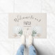 Trendy Herzlich willkommen in unserem Pflaster, mit Aquarellpastellfarben und weißen Kürbissen und Herbstblättern, auf einem gedämpften pfirsichfarbenen Hintergrund. Dieses schicke rustikale Objekt zeichnet sich durch Ihren Familiennamen und die moderne Schriftzeichen aus.