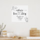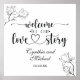 Ein modernes und elegantes Schwarz-Weiß-Blumengestück mit der Art 'Welcome' Zeichen für Ihren Großen Tag!