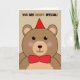 Schicken Sie diesen super nahen illustrierten braunen Teddybären in einem Party Hut und Bogen-Krawatte, um jedem etwas Besonderes zu wünschen zum Geburtstag.