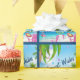 Diese topische, warme Weihnachtsfeiertagszeitung mit zwei bunten Wintervögeln und einem rosa Flamingo, mit einer Weihnachtsmannmütze, genießen den schönen Strand unter einer Palme mit Lichtern und Ziergegenständen. Einige Grafiken von artwork&@delightful-doodles.com und slslines.etsy.com ^