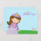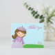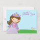 Diese 4,25x5,5 Mädchen Geburtstagsparty Wohnung Dankeschön-Karte hat ein süßes königliches Prinzessin Thema. Eine braune Haarprinzessin stehend an den links, die ein Prinzessenkleid und eine Juwelenkrone trägt. Unten rechts sind einige rosa und blaue Blumen. Oben, Dankeschön ist in einem niedlichen kursiven Schriftart geschrieben mit einem Sternstab oben. Unter dem Dankeschön gibt es Platz, damit Sie Ihre Danksagung an die Zuhause schreiben können. © 2012 Jessica Weible/JW Illustrationen