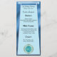 Eine elegante Speisekarte mit aquamarinem Blau- und Folienmuster und Ihrer einzigartigen Geburtstagsnummer in Glitzer und Gold.