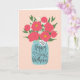 Ein Maurerkrug füllte sich mit einem herrlichen Haufen von Pfannkuchen und weißen Blume mit den handgeschriebenen Worten 'Für meine Mama' auf dem Etikett und 'Happy 58. Geburtstag' auf dem Maurerglas. Die perfekte Geburtstagskarte zum Geburtstag deiner Mutter! © Ness Nordberg