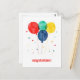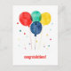 Diese Postkarte zeigt ein feierliches Bild von Ballons und Konfetti mit dem Wort "Glückwunsch!".
