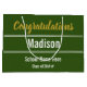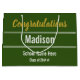 Herzlichen Glückwunsch an den Absolventen! In der Mitte gibt es einen Ort für den Namen des Absolventen in weißem Text. Ganz oben steht das Goldskript "Imitate" (nicht Folie) mit Glückwunsch. Am Ende können Sie die Jahresklasse und den Namen der Graduiertenschule hinzufügen. Dieser Text ist auch weiß. Die Tasche ist waldgrün.