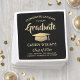Fügen Sie eine elegante personalisierte Touch zu Uni- oder High School-Abschluss-Party-Dekorationen mit diesen individuellen schwarz-goldenen Papierservietten hinzu. Der gesamte Text ist einfach anzupassen. Das Design besticht durch einen schwarzen Hintergrund, eine Mütze aus Imitat-Folie, eine stilvolle moderne Typografie und handgeschriebene Schriftzeichen-Kalligraphie. Bitte beachten Sie, dass Gold farblich gedruckt ist, nicht metallische Folie. Herzlichen Glückwunsch an den Absolventen!