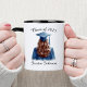 Diese bezaubernde Abschluss-Kaffee-Tasse besticht durch ein brünettes Weibchen in einem Blautönen. Personalisieren Sie es mit dem Namen und den Klasseninformationen des Schülers. Ihr Absolvent wird es schätzen, ihren Morgen mit einer Tasse Kaffee aus dieser besonderen Tasse zu beginnen. Bestelle noch heute!