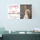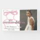 Herzlichen Glückwunsch Coquette Bow Foto Abschluss. Dieses Design enthält einen Skripttext mit Platz für ein Foto des Abschlusses. Stating, Con-grad-Mationen. Fügen Sie alle Ihre eigenen Daten hinzu, sowie Ihr eigenes Foto.