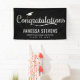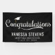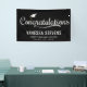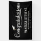 Modernes Abschluss Banner mit fett weißer Schrift mit schwarzem Hintergrund. Das Design verfügt über eine weiße Graduierung mit dem Satz "Glückwunsch ". Personalisieren Sie das Abschluss-Banner der Marine, indem Sie den Namen des Absolventen, den Namen der Schule und das Jahr des Abschlusses hinzufügen. Für ein individuelleres Aussehen, ändern Sie den Hintergrund in Ihre Schulfarben. Das Abschluss Poster ist ideal für Ihr High School oder Uni-Abschluss Party!