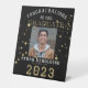 Dieses elegante, schwarze und goldene Party-Schild zeigt das Bild Ihres Abschlusses und schließe das Klassenjahr mit dem prominenten Wort Graduate in einem extravaganten Goldtext. Ein Sprinkle goldener Sterne macht Spaß. Eine wunderbare Ergänzung zum Party Tisch oder Foyer und eine ansehnliche Hommage an die Errungenschaft Ihres Abschlusses.