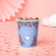 Hübsch Blue Graduation Party Papier Becher mit schönen rosa Rosen und blau-weiß Anemone Blüten. Personalisieren Sie mit jedem Text, den Sie möchten, ändern Sie die Hintergrundfarbe zu Ihrem Favoriten. Auch passende Teller, Servietten und Ballons sind erhältlich.
