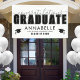 Dieses klassische und dennoch moderne Graduiertenbanner ist der perfekte Weg, um diesen besonderen Meilenstein zu feiern. Das Design verfügt über "Herzlichen Glückwunsch" in elegantem grauem Drehbuch über "GRADUATE" in fett schwarzem Schriftart und schafft so einen auffallenden Brennpunkt. Unten gibt es Platz für den Namen, die Schule und "Klasse des 2025" (oder jedes Jahr), was es zu einem personalisierten Mittelpunkt für die Feier macht. Zwei Graduierungs-Cap Icons fügen eine festliche Touch hinzu. Dieses Banner ist für Vielseitigkeit konzipiert und eignet sich hervorragend als Hintergrund für Fotos, als Party-Eingangsanzeige oder als dekorativer Brennpunkt. Das Schwarz-Weiß-Design behalte es zeitlos und raffiniert, aber alle Farben - einschließlich Text- und Cap-Icons - können an Schulfarben oder persönliche Vorlieben angepasst werden. Eine stilvolle und unvergessliche Art, die harte Arbeit und Leistungen des Absolventen zu ehren!