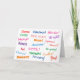 Diese farbenfrohe und fröhliche Karte wird jeden Tag aufhellen! Die Vorderseite ist mit einundzwanzig lustigen, trendigen "Herzlichen Glückwunsch"— "Wie geht's!", "Phantastisch!", "Ok!" und vielem mehr bedeckt - jeder in einem anderen Schriftart. Im Inneren lautet die Meldung "Mit anderen Worten...GLÜCKWUNSCH!" Die Worte, innen und außen, sind in verschiedenen lustigen hellen Farben. Ändern Sie die Farben, Schriftart oder eine der Formulierungen, um Ihre Bedürfnisse Anzug. Ideal für jede Gelegenheit, wenn Sie woll, eine Leistung oder glückliche Veranstaltung zu feiern, oder geben Sie jemandem Ermutigung.
