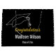 An der Spitze steht eine Kontur der Kappe eines Absolventen. Unter der Kappe befindet sich eine Vorlage auf dieser goldenen Geschenktasche aus Schwarz, Weiß und Imitat. Mit der Vorlage können Sie den Anzeigetext bearbeiten. Sie können die Botschaft ändern, das Jahr, in dem der Student geschlossen ist, und den Namen des Absolventen. Imitate (nicht Folie) Gold-Skript bildet die Nachricht. (Gespielt: Glückwunsch) Der weiße Text steht für den Namen des Absolventen und das Jahr, in dem der Schüler geschlossen wird, zur Verfügung. (Vorgestellt: Klasse 2025) Ein Muster aus weißem Text für das Jahr, in dem der Schüler geschlossen wird, befindet sich auch auf den Seiten der Geschenktasche.