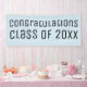 Herzlich willkommen bei Ihren Abschlussfeiergästen mit einem Banner, der lautet: "Herzlichen Glückwunsch Klasse von [JAHR]" in trendigem, schwarz geometrischem Text auf einem hellblauen Hintergrund. Passen Sie das Jahr in der Sidebar an. Sie können die hellblaue Hintergrundfarbe ändern, indem Sie auf "Bearbeiten mit dem Entwurfswerkzeug" klicken und in der Sidebar eine "Hintergrundfarbe" auswählen. Klicken Sie dann auf "Fertig" und "Zum Warenkorb hinzufügen", um Ihr individuelles Banner zu erwerben.