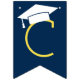Stilvolle Graduierungsparty bunting Banner bietet "Glückwunsch!" mit Gradcap und abwechselnd marineblau und hellgelb bunting Fahnen / Briefe. Beachten Sie, dass die Farben an Schulfarben oder Party angepasst werden können.