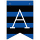 Stilvolle Graduierungsparty bunting bietet "Herzlichen Glückwunsch!" mit Gradcap, Streifen und Polka Dot Details. Schwarz, Weiß und Königsblau (können an Schulfarben angepasst werden).