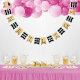 Stilvolle Graduierungsparty bunting bietet "Herzlichen Glückwunsch!" mit Gradcap, Streifen und Polka Dot Details. Schwarz, Weiß, Silber und Gold.