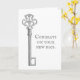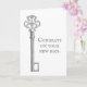 Herzlichen Glückwunsch zu Ihrer neuen Zuhause, personalisierten, maßgeschneiderten Angebotsvorlage mit einer Vintagen Abbildung eines antiken silbernen Schlüssels. Niedlich und lustig, lustig zu personalisieren.