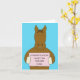 Ein Cartoon eines lächelnden braunen Pferdes, das ein Schild zwischen seinen Vorderhütten trägt. Auf dem Schild steht: "Herzlichen Glückwunsch zu Ihrem neuen Haustier".